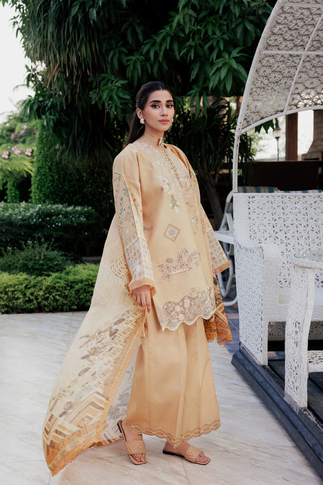Digital Printed Embroidered Viscose Front 1.25 Mtr Digital Printed Viscose Back and Sleeves 1.85 Mtr Digital Printed Chiffon Dupatta 2.5 Mtr Digital Printed Viscose Trouser 2.5 Mtr Embroidered Border for Sleeves 1 Yard Embroidered Border for Hem 1Pc.