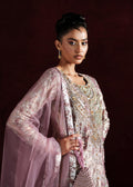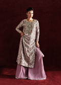 Immerse yourself in the splendor of tradition and elegance with this enchanting lilac tissue ensemble crafted from luxurious pani tissue. The dress features an intricately embroidered neckline, with embellishments artfully strewn throughout, creating a mesmerizing interplay of textures and patterns. The delicate embroidery is further highlighted by a scattered spray of embellishments on the sleeves and all over the front
