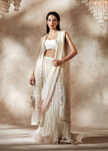 This beautiful ivory outfit definitely makes a style statement. It is paired with crushed lehnga and an ombre' dupatta with pearl finishing.Â