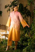 2-Piece Fabric: Lawn silk. This suit features a gradient color scheme. It includes a straight shirt with a collar neckline, with ada work embroidery on one side of the shirt and..
