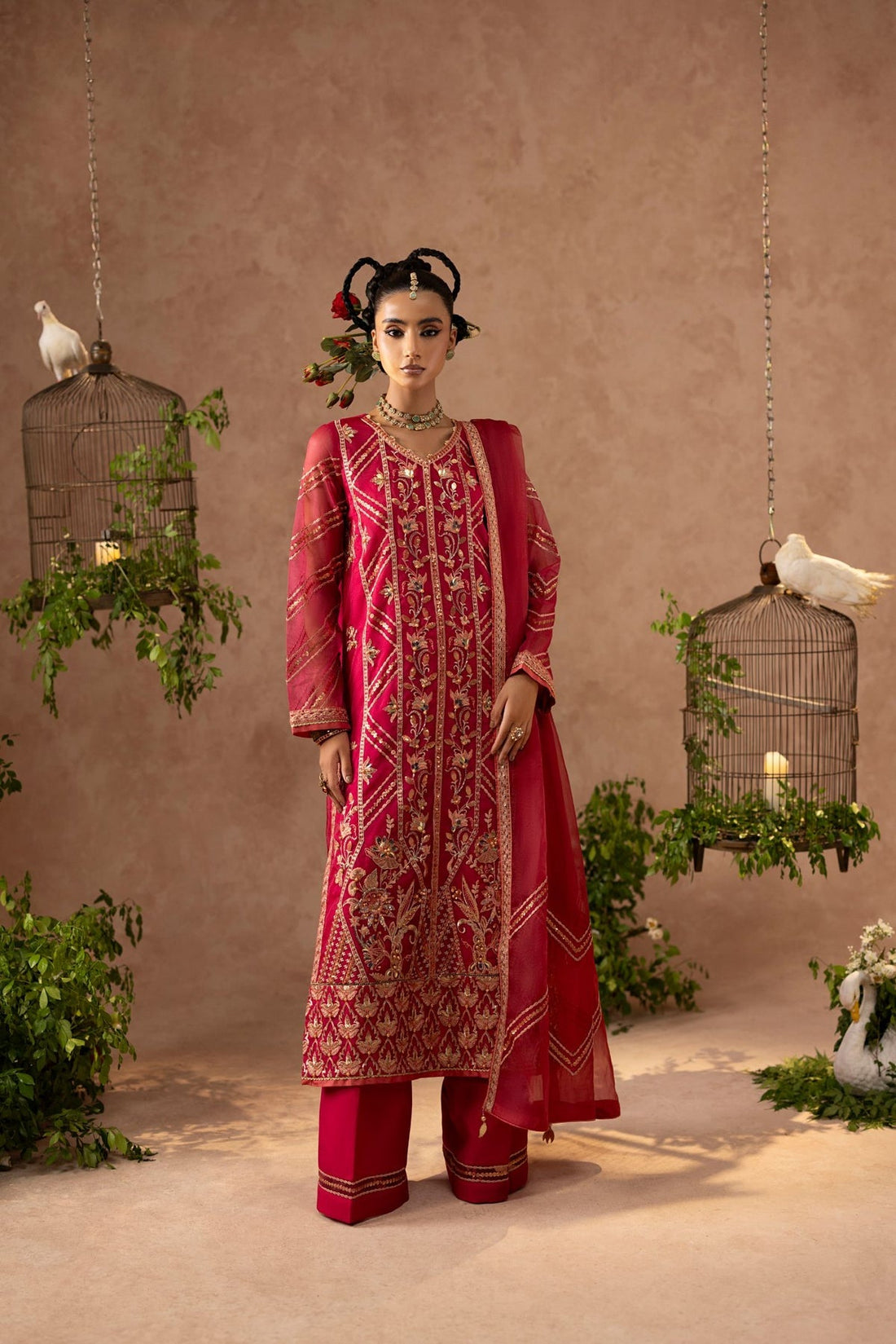 Organza Shirt (Embroidered + Embellished)Organza Dupatta (Embroidered)Silk Trouser