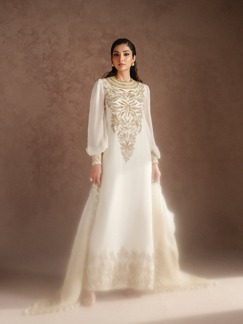 This timeless masterpiece FLORA, features a hand embroidered chiffon shirt paired with a luxurious raw...