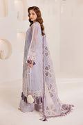 A dreamy light purple ensemble elevated with striking contrasts dark purple and green threadwork weave through floral embroidery on an airy chiffon shirt, creating a perfect harmony of softness and depth. Paired with a beautifully embroidered chiffon dupatta featuring delicate appliqué work and dyed raw silk trousers, this look is a graceful blend of color and quiet elegance. Embroidered Chiffon Front Center Panel Embroidered Chiffon Front Left + Right Panels Embroidered Chiffon Back Embroidered Chiffon Sleeves Embroidered Chiffon Front+Back+Sleeves Border Embroidered Chiffon Front+Back+Sleeves+Trouser Border Embroidered Chiffon Front+Back Chalk + Trouser Border Embroidered Chiffon + Organza Appliqué Dupatta Dyed Raw Silk Trouser.