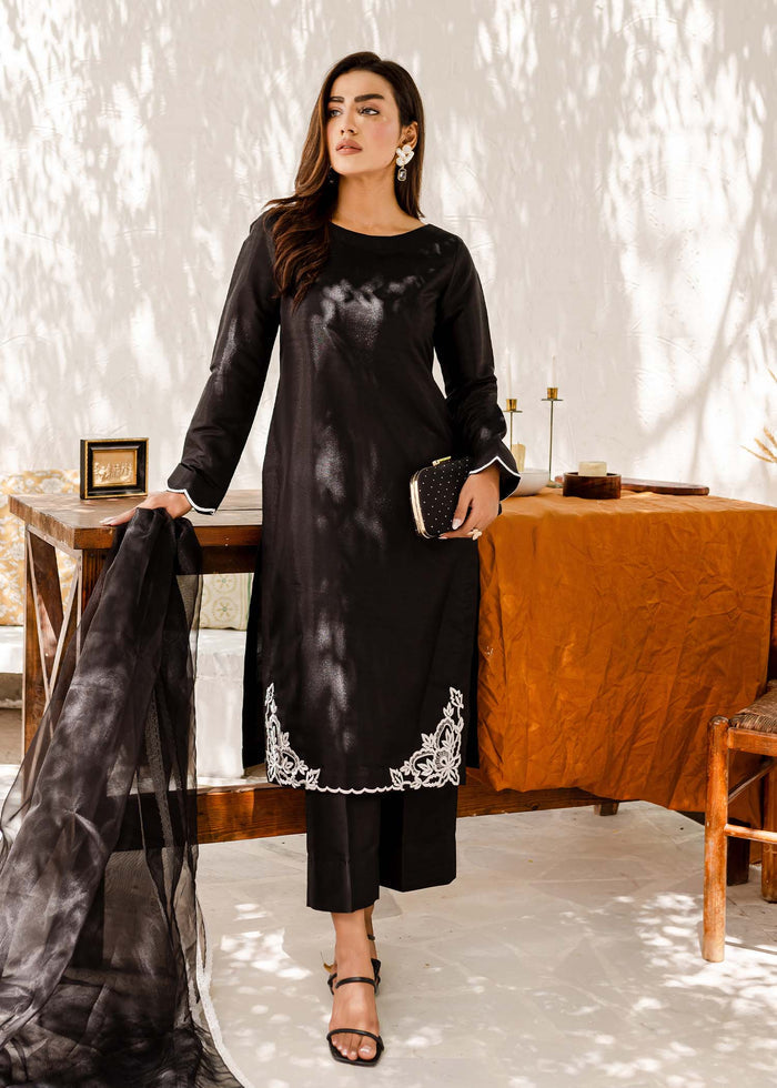 RUMI, features a long straight fit with beautiful embroidery details on front and sleeves. It comes with wide legged pants and Sheer dupatta with lace details on borders. Making it a perfect pick for any summer day!