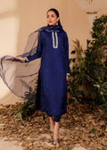 NAZ, Enchanting Silk set in midnight shade. This ensemble is a symphony of luxury. Every detail of this outfit exudes refinement and grandeur, making it the ultimate choice for those who seek to add a chic and mesmerizing touch to their formal ensemble. To elevate the opulence, it is made in longer length,features hand embellished sequins on the neckine and sleeve. It comes with an soft sheer dupatta with minimal silver details.