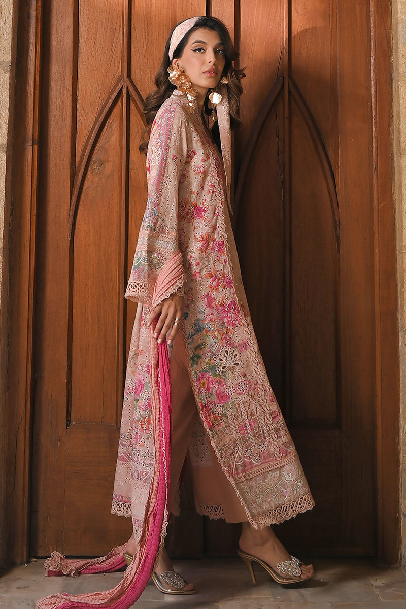 Enveloped in the subtle allure of Dusty Pink. Our long A-line kurta boasts intricate border embroidery, a testament to timeless elegance. Paired seamlessly with classic plain pants and a crush dip-dyed dupatta, this ensemble is more than an outfit it's a journey into refined sophistication. Let the soft hues and delicate details weave a tale of grace around you.