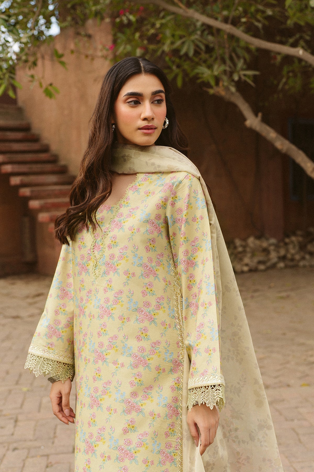 Delicate florals bloom on light, airy lawn, crafting an ensemble that embodies effortless grace. breezy digital printed silk dupatta flows with movement, complementing the ensembleÂÂs ethereal charm. Paired with breathable cotton cuoltte for all-day ease, this look is perfect for twilight summer gatherings