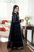 Drape yourself in the timeless allure of Caviar Noir, a captivating black ensemble crafted from luxurious chiffon. The hand-embellished neck patch adds intricate detail, while the twin sequins-embroidered chiffon dupatta enhances the look with a luminous touch of elegance. A statement of sophistication for the festive season. .