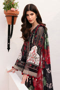 Bold and beautiful, this schiffli outfit is a statement of traditional craftsmanship blended with contemporary design. The black self-jacquard lawn is embellished with vibrant floral embroidery, providing a striking contrast. Organza borders and detailed motifs enhance the richness of the design, while the digital printed silk dupatta adds a layer of complexity with its lush floral patterns, making it perfect for Eid celebrations and evening events.