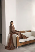 Imagine yourself walking down the aisle, bathed in the warm glow of the sunset. You're wearing the "Amber Dreams" hand-embroidered organza bridal ensemble and it feels like magic. This isn't just a dress, it's a masterpiece of craftsmanship that will take your breath away. The flowing organza shirt and dupatta are a breathtaking canvas adorned with intricate hand embroidery, shimmering tilla work and dazzling embellishments. Pearls, crystals, cutdana and sequins catch the light like a thousand stars, creating a mesmerizing shimmer that reflects the joy of this special day.