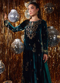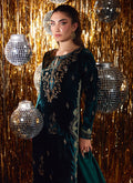 Farah Talib Aziz | Velvet Fete 4 | Gleen Forest Green Velvet Shirt And Dupatta