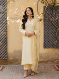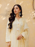 This breezy yellow kurta is perfect for summers with intricate embroidery and flower details embellished with pearls, diamonte and sequins, paired with yellow boot cut pants. Dupata has embroidery details, pleats and lace details can be dressed up or down according to the occasion.