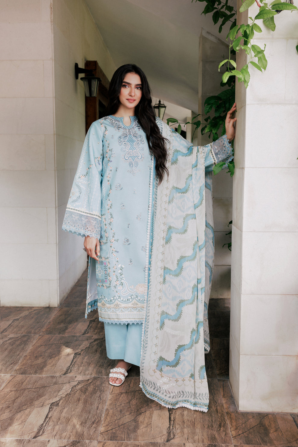 Digital Printed Embroidered Viscose Front 1.25 Mtr Digital Printed Viscose Back and Sleeves 1.85 Mtr Digital Printed Chiffon Dupatta 2.5 Mtr Dyed Viscose Trouser 2.5 Mtr Embroidered Border for Sleeves 1 Yard Embroidered Neckline Motif 1 Pc.