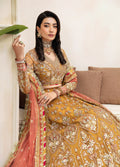 Miraas (item code GL-WS-23V1-35) from our wedding formals collection - Fully composed front bodice with a geometrically embroidered and sequinned neckline, gorgeously detailed back, and fully composed sleeves with extensive sheesha work and adda-work embellishments. The outfit - put together in a lehnga choli cutline - features a mustard lehnga to complete the look. The dupatta is a pop of colour - from peachy coral dupatta in the middle to fuchsia pink dupatta pallu extensions and mustard raw silk four-sided borders for the dupatta, the outfit is just the perfect fit for the festive season.