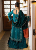 Immerse yourself in the elegance of teal green with this exquisite ensemble,adorned with, adorned with contrasting embellishments that bring each detail to life.The rich teal shirt is complemented by a vibrant turquoise dupatta and matching trousers,creating a harmonious balance of color and craftsmanship.with intricate embroidery gracing every panel,border,and sleeve,this outfit celebrates artistry and elegance in every stitch-a perfect choice for making a graceful statement.