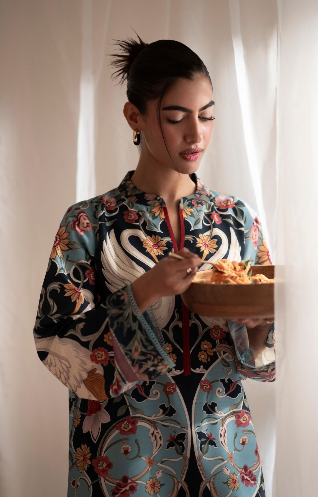Rooted in Islamic and Pakistani cultural values, Farabi places strong emphasis on modesty. To uphold these principles, some design elements may be refined — such as replacing low backs with traditional backs, adjusting drop shoulders to standard shoulders, covering exposed midriffs, or adding sleeves where required.