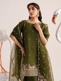 Earthy, elevated, and endlessly graceful Matcha from The Silk Chapter is a tribute to natureÂÂs depth and detail. The richly embroidered rawsilk front and sleeves bring texture and tradition to life, while the plain rawsilk back creates balance in form. Embroidered organza elements including a detailed neckline patch and slit patti add structure and refinement. Paired with a timeless farshi shalwar in plain rawsilk and a flowing organza dupatta featuring corner motifs, this ensemble is a masterclass in tonal sophistication.