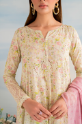 Frock Front, Back & Sleeves: Borer Embroidered Printed Lawn