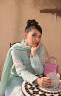 Revel in the charm of UZURI, a Caribbean Aqua Green three- piece ensemble designed to make a statement. The screen- printed shirt, adorned with hand-embellished cutwork details and a V neckline, is perfect for any occasion. Paired with a crushed flared sharara and a luxurious silk hand embellished sequins spray dupatta featuring an Aqua green scalloped border, this outfit is ideal for everyday wear or a day event. Relish the beauty and allure of Uzuri.