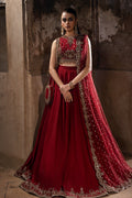 Featuring exquisite Resham, Tilla, and sequin embroidery, this blouse is adorned with intricate hand embellishments and finished with beautiful hangings on both the blouse and dupatta, adding a refined touch to the ensemble.