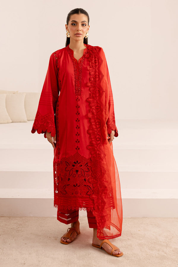 Embroidered Lawn Shirt Paired With Embroidered Organza Duppatta And Dyed Cotton Trouser