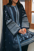 Bathed in a resplendent shade of navy blue, Roshan is a celebration of intricate craftsmanship, with delicate embroidery that harmoniously fuses traditional motifs with contemporary allure. The plush texture of khaddar offers an indulgent warmth, cocooning